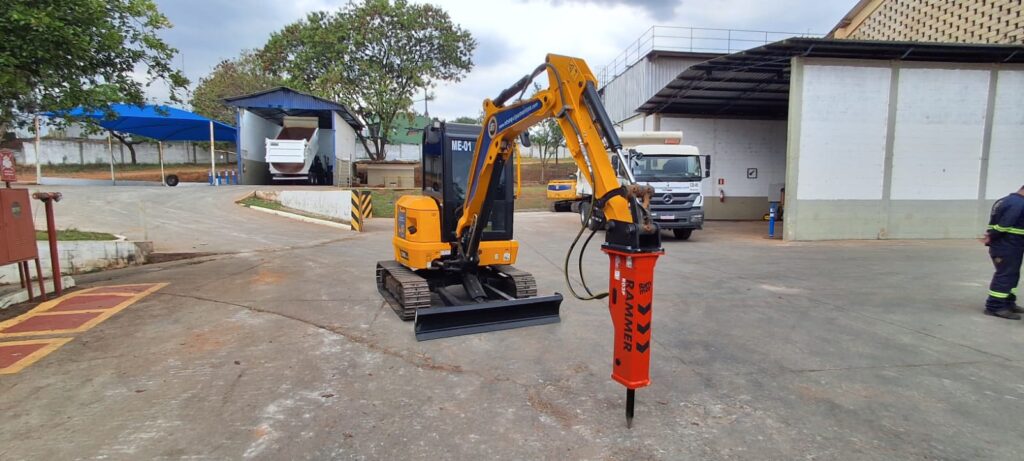 – Mini Escavadeira JCB com Martelo de demolição de 180 kg;