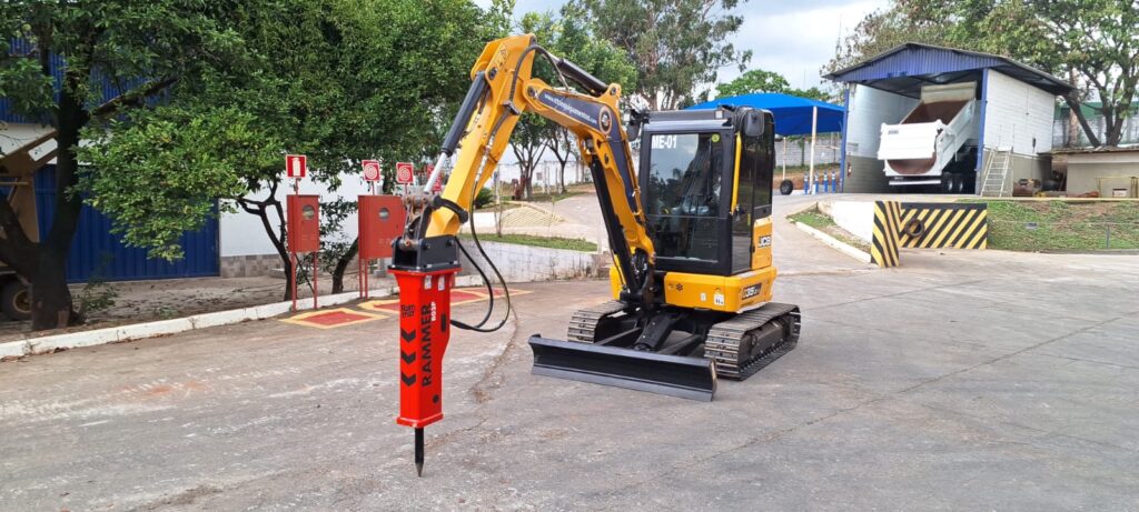 – Mini Retroescavadeira JCB com Martelo de demolição de 52 kg;