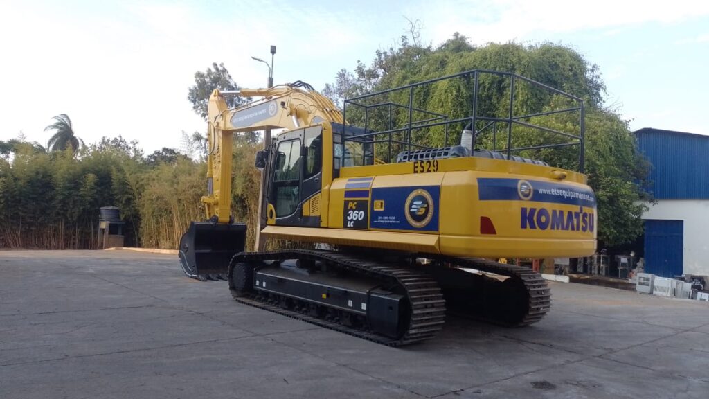 A escavadeira Komatsu modelo PC360LC – 8M2 possuem potência de 286 HP, peso operacional de 35,2 toneladas , caçamba com capacidade de 2,23 m³ e cabine ROPS/FOPS fechada com ar-condicionado.