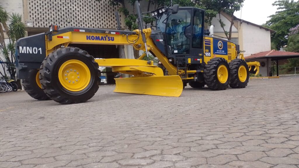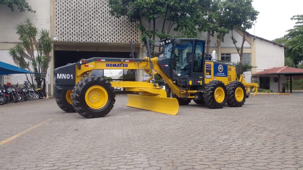 A Komatsu GD655-5 é uma motoniveladora robusta, projetada para operações de terraplenagem, nivelamento de terrenos, manutenção de vias rurais ou urbanas, drenagem, abertura de valas, conformação de taludes e obras de infraestrutura rodoviária ou industrial.